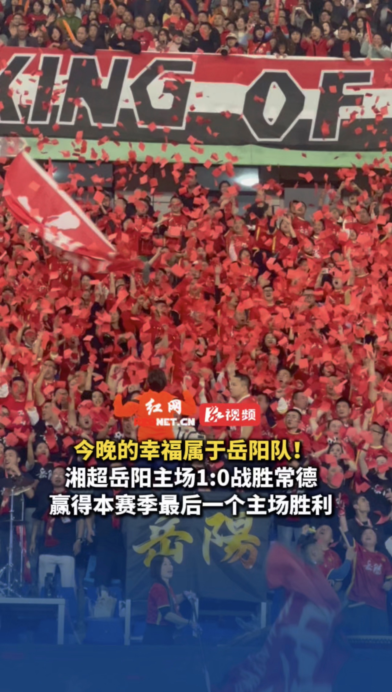 红网时刻新闻11月17日岳阳讯(记者 韩佳根)11月16日晚,“湘超”常规赛第十轮比赛正在进行,岳阳队坐镇主场迎战常德。经过一场激烈对决,最终岳阳队1:0战胜常德队,赢得本场“洞庭德比”的胜利。比赛结束后,岳阳球迷载歌载舞,用最热烈的方式表达着对主队的热爱。