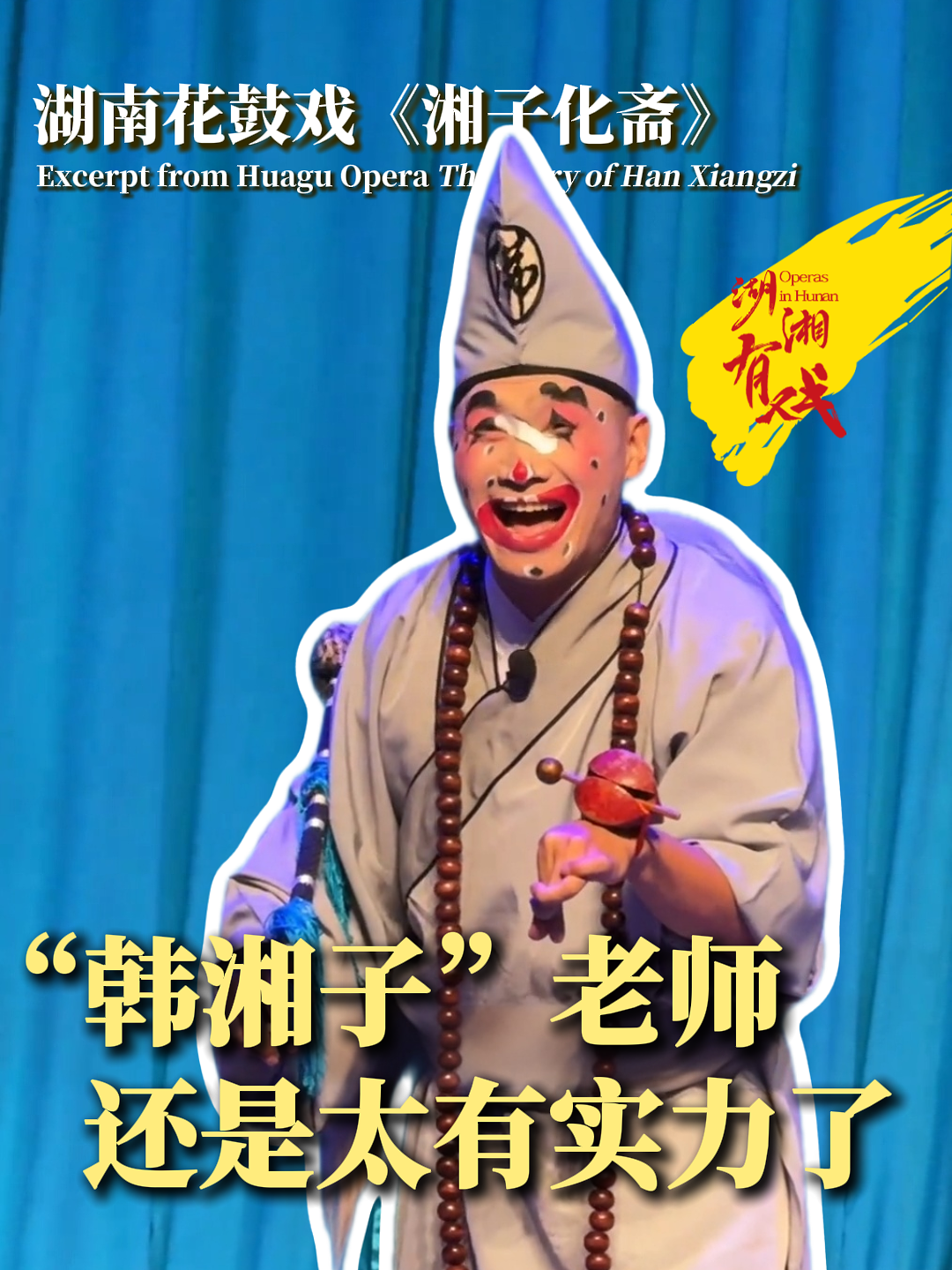 《湘子化斋》以八仙之一的韩湘子为主角,讲述了韩湘子化作驼背僧人夜访妻子林英的故事。由黄桂泉老师扮演的韩湘子,表情动作夸张,引人逗趣。网友:他一动,你就知道这味儿就对了!