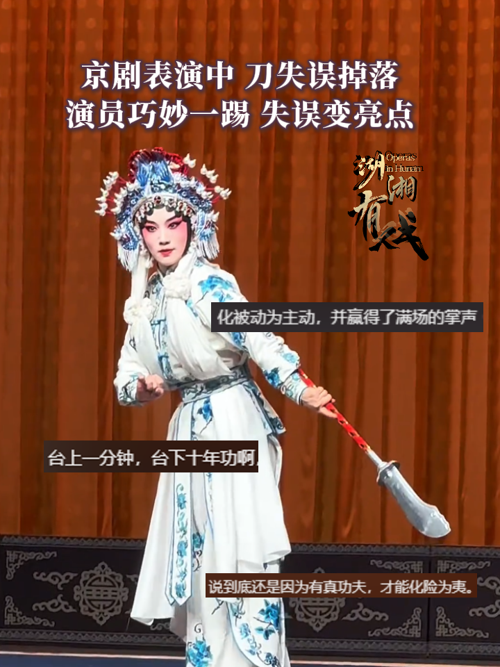 京剧舞台上,刀意外滑落!只见演员临危不乱,飞起一脚将其巧妙挑起,瞬间化失误为惊艳高光。这一记神来之脚,不仅化被动为主动,更赢得满场喝彩。正所谓“台上一分钟,台下十年功”,究其根本,正是深厚的真功夫,才能如此化险为夷。