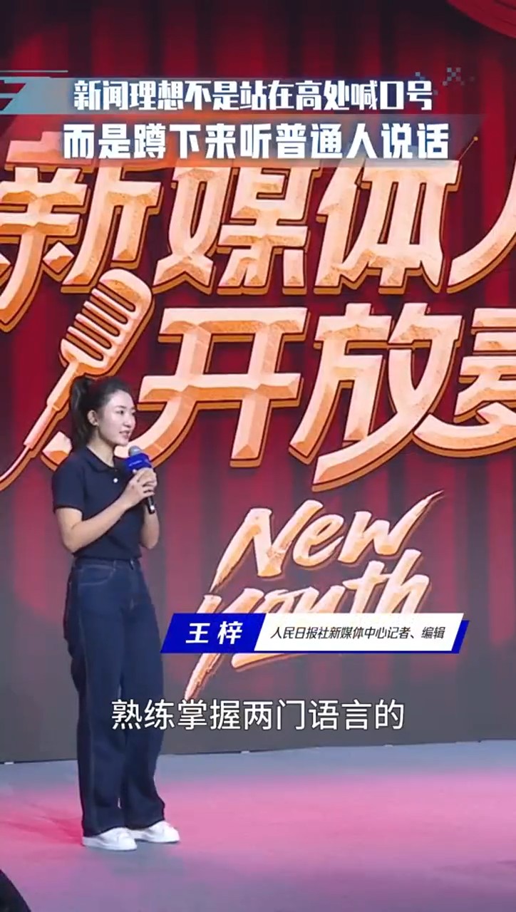 红网时刻新闻11月13日讯(记者 汪衡 任晔)11月12日,2025中国新媒体大会青年论坛在长沙举行。在“新媒体人”开放麦环节,人民日报社新媒体中心记者、编辑王梓以一场幽默与温情交织的分享,展现了新闻理想与基层实践的深度融合。她从自身七年转型经历切入,提出“国际传播需扎根烟火,新闻理想应倾听普通人”的核心理念,引发与会者共鸣。