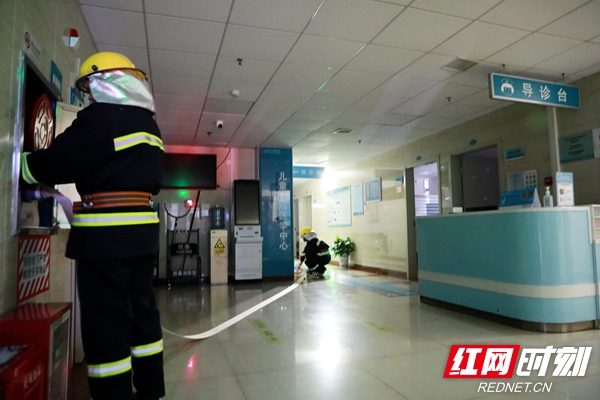 随后,一阵急促的警报声响起,模拟长沙市口腔医院儿科三楼面诊室发生火情的应急疏散演练正式开始。医院立即启动火灾应急预案,医务人员迅速响应,引导患者及家属用湿毛巾捂住口鼻,沿指定路线有序撤离。天心区消防救援大队接警后迅速赶到现场,展开灭火与人员搜救工作。演练过程中,保卫处及时清点人员,医护人员妥善安抚患者,各环节衔接紧密、配合顺畅,整体流程紧张有序。