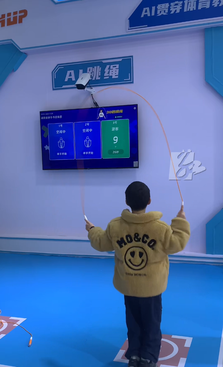 这是由湖南省新华书店有限责任公司打造的“智趣新体育”项目体验现场,作为体教融合创新实践,其“智慧操场”建设已在湖南136所试点学校基本建成落地。“智慧操场”依托AI视觉算法、物联网、大数据等技术的综合应用,构建起覆盖“教-学-练-测-评-赛”的全流程服务体系,让体育教育更科学、更高效。