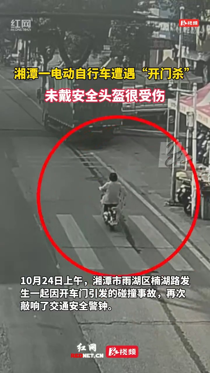 红网时刻新闻11月4日湘潭讯(记者 吴佳俊 通讯员 胡红章 邹斯怡)“如果当时戴了头盔,也许就不会伤得这么重。”电动自行车驾驶人杨某某回忆起几天前的事故,语气中满是懊悔。10月24日上午,湘潭市雨湖区楠湖路发生一起因开车门引发的碰撞事故,再次敲响了交通安全警钟。