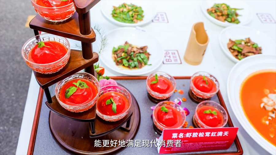 获得第一名的龚家祥来自潇湘华天大酒店,其作品“虾胶松茸红满天”将大明虾胶酿入镂空的西红柿中蒸制而成,全程未添加食用油,巧妙借助松茸的天然鲜味提鲜,口感层次丰富,赢得了评委的好评。现代华天大酒店的陈洋检与湖南华天大酒店的谢选成同样表现优异,分获二、三名。