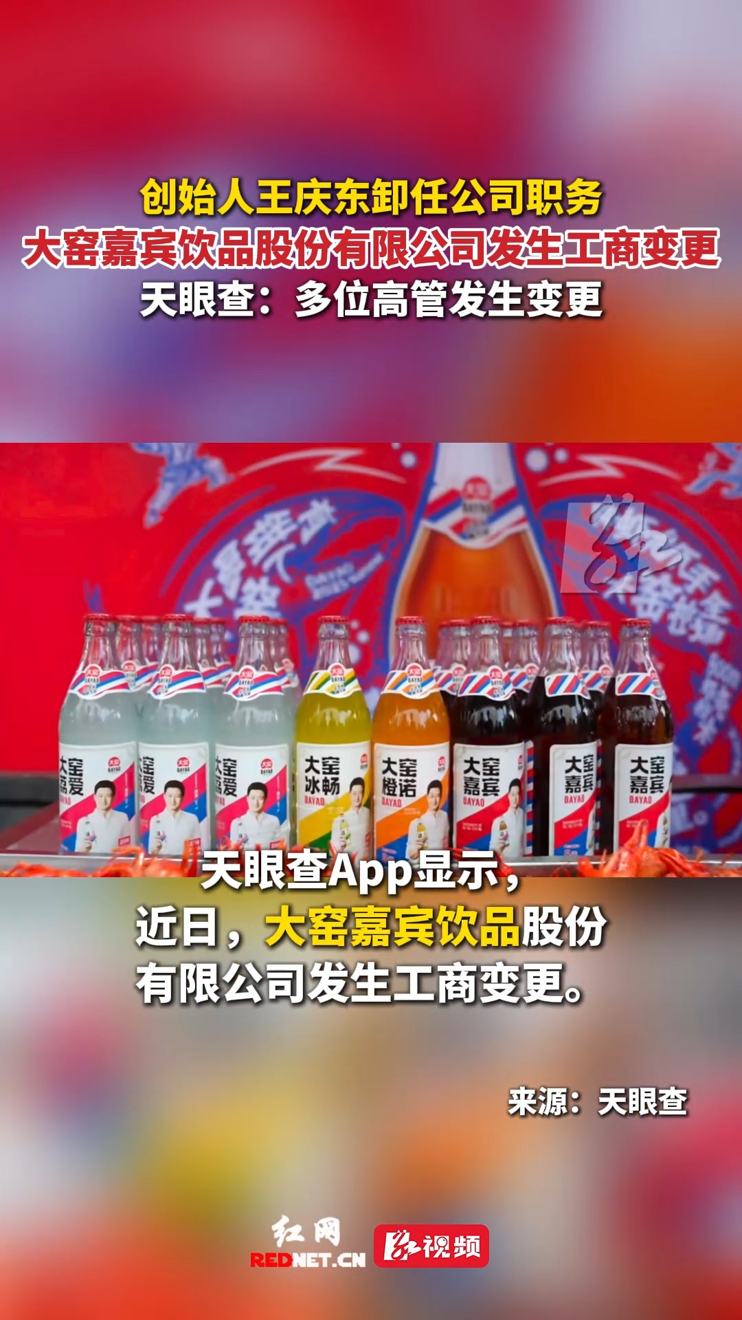 红网时刻新闻12月18日讯(记者 向婉 实习生 童可嘉)天眼查App显示,近日,大窑嘉宾饮品股份有限公司发生工商变更,大窑汽水创始人王庆东卸任该公司法定代表人、董事长,戴诚接任法定代表人并担任董事,同时,多位高管发生变更。