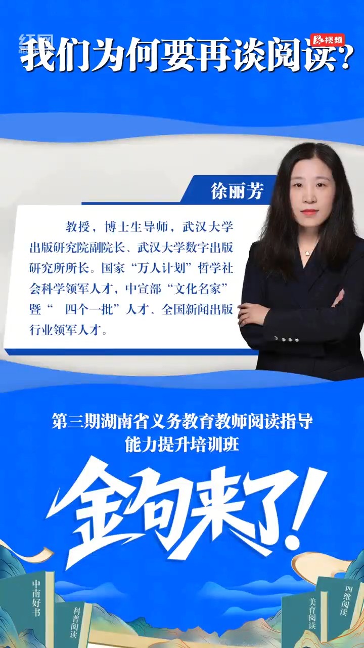 红网时刻新闻记者 蔡娟 任晔 长沙报道近日,第三期湖南省义务教育教师阅读指导能力提升培训班在长沙举行。专家报告环节,武汉大学出版研究院副院长、数字出版研究所所长徐丽芳教授作《对标国际、扎根本土:新时代中小学阅读指导的科学路径与资源赋能》主题报告。我们为何要再谈阅读?徐丽芳表示,阅读是终身学习的基础能力,也是数字时代的生存技能。“我们要提高自己的综合素养,要提高批判性思维、创造性思维,它的底层、枢纽和交汇的地方,其实就涉及到一个阅读素养的问题。”
