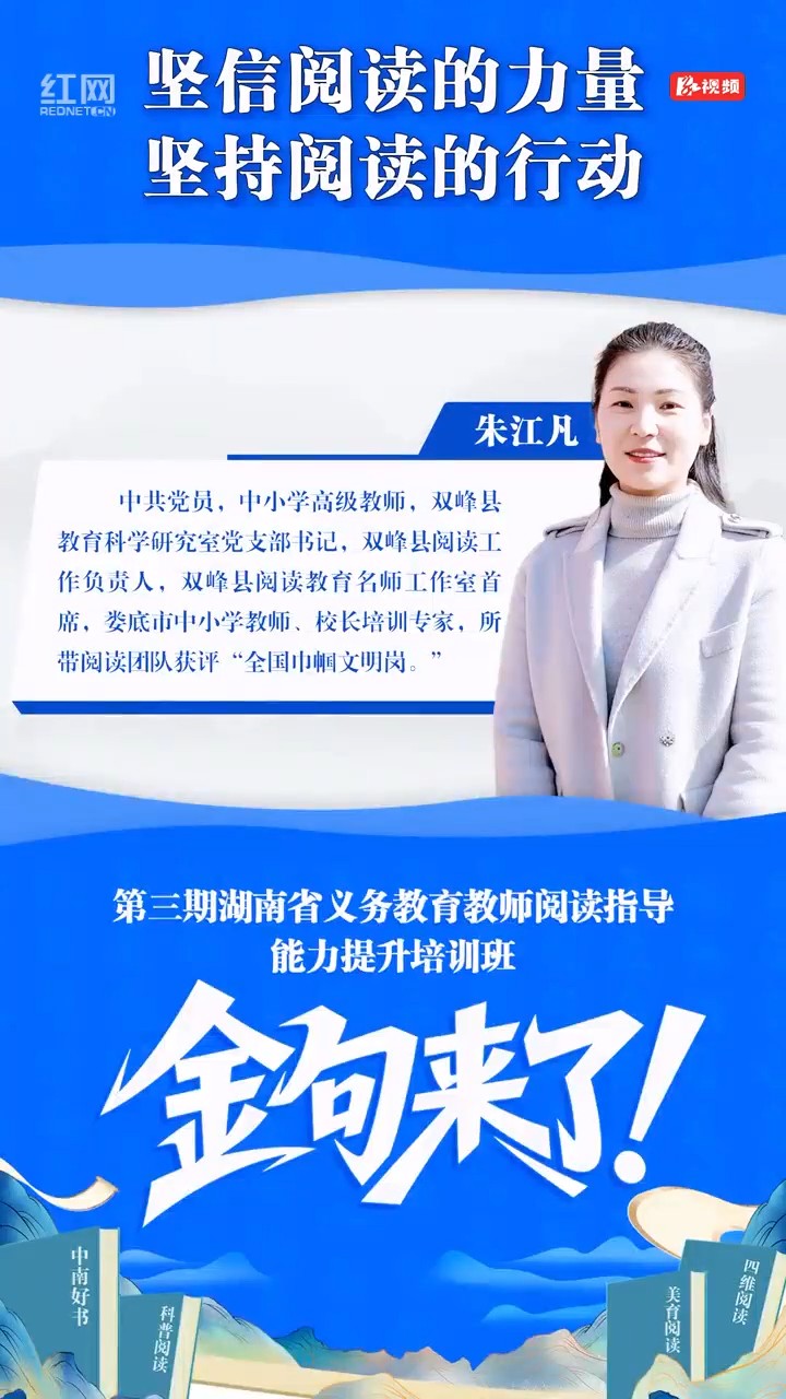 红网时刻新闻记者 蔡娟 任晔 长沙报道近日,第三期湖南省义务教育教师阅读指导能力提升培训班在长沙举行。区域经验案例分享环节,娄底市双峰县教育科学研究室党支部书记朱江凡以《双峰“八个一”阅读模式》为题,分享了县域阅读的实践经验。分享中,朱江凡描绘了双峰阅读教育的十六年成长路径:“始于兴趣,成于习惯,转化为能力,升华为素养。这正是一条由阅读出发,经由阅历,走向阅己与阅人,最终阅读理解世界的完整旅程。”