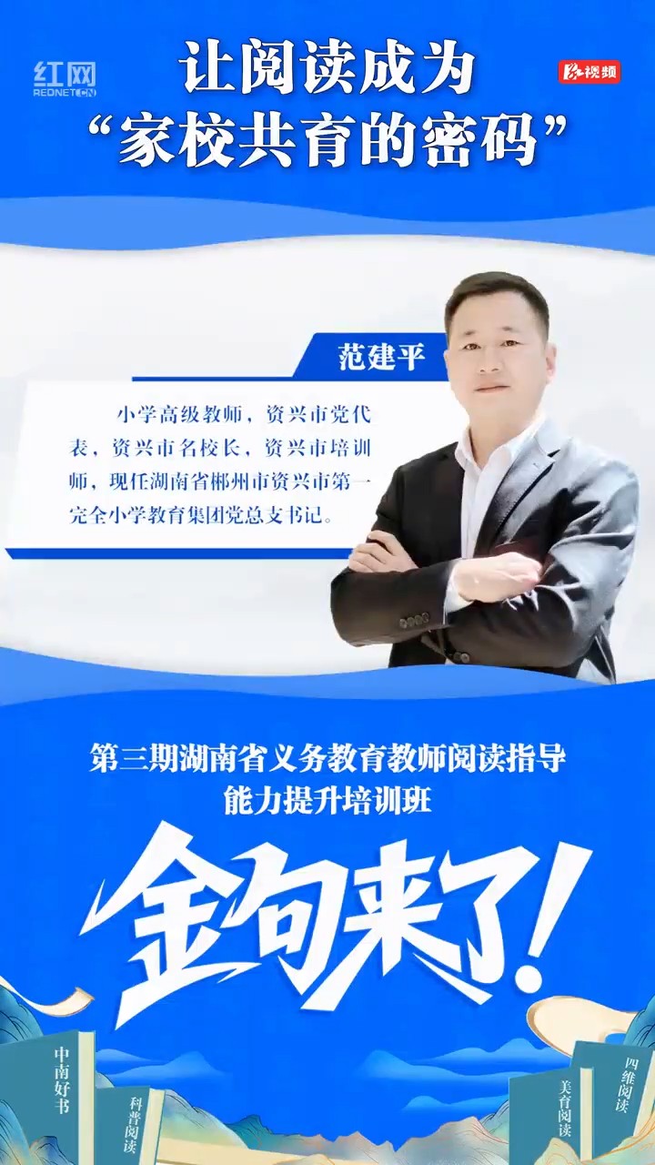 红网时刻新闻记者 蔡娟 任晔 长沙报道近日,第三期湖南省义务教育教师阅读指导能力提升培训班在长沙举行。区域经验案例分享环节,资兴市第一完全小学党总支书记范建平以《书香润底色 阅读育新人》为题作分享。他表示,书香校园不能只靠学校单打独斗,必须构建“校园引领、家庭参与、社区支持”的阅读共同体。