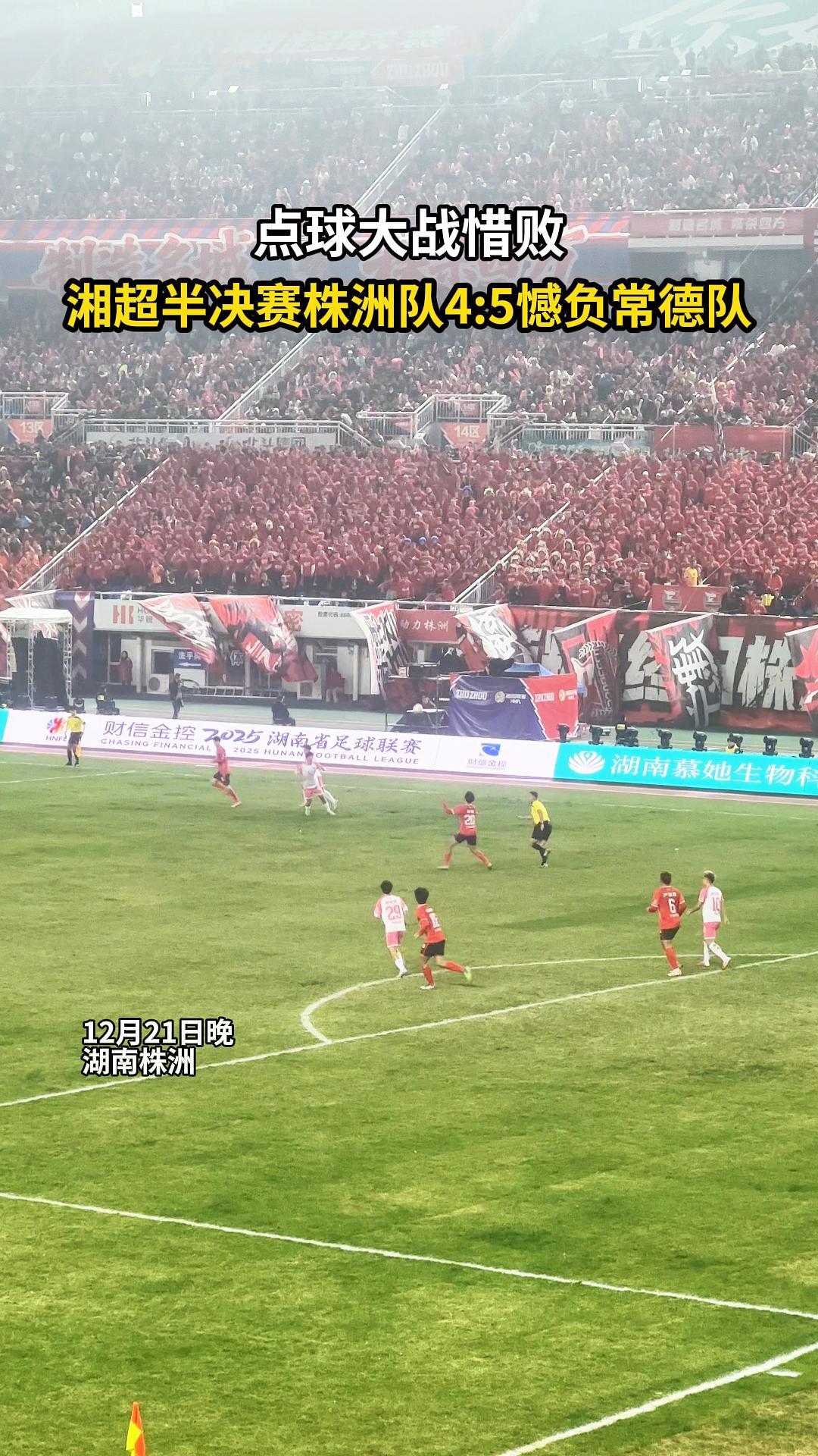 红网时刻新闻12月21日株洲讯(记者 曹缇)12月21日晚,“湘超”半决赛第二场在株洲市体育中心火热开赛。主场作战的株洲队迎战常德队,双方展开了一场惊心动魄的攻防大战,最终株洲队在点球大战中以4:5不敌对手,遗憾与决赛席位失之交臂。