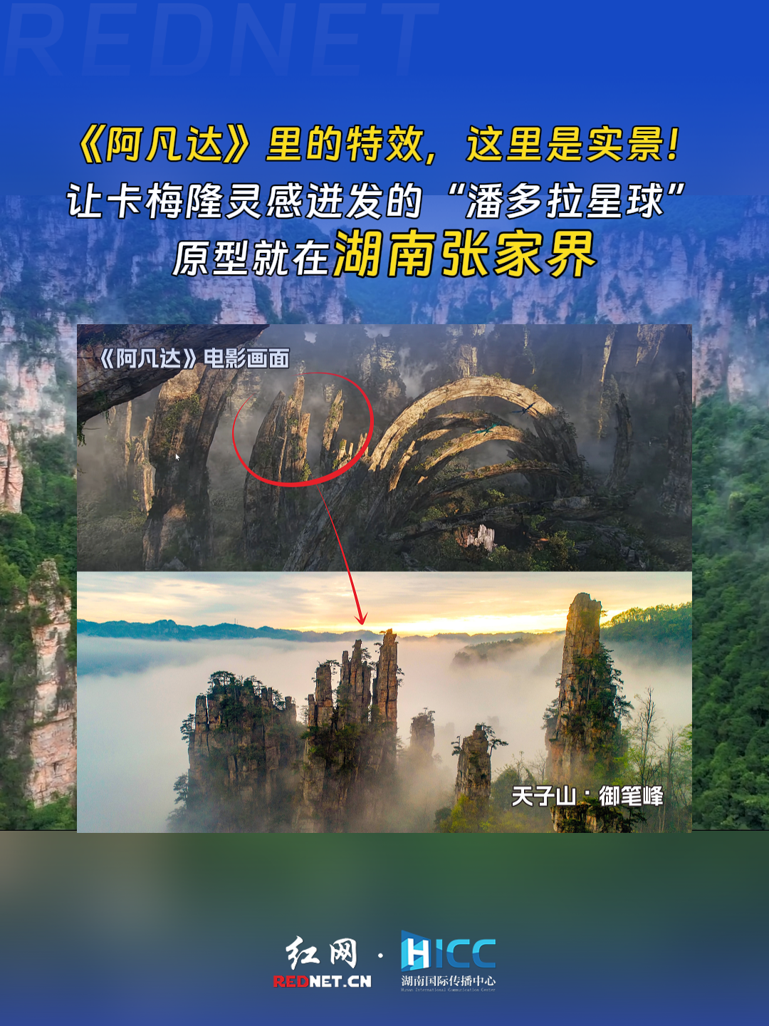 你知道吗?让卡梅隆灵感迸发的“潘多拉星球”,原型就在中国湖南·张家界。电影里震撼世界的“哈利路亚山”,原型正是袁家界那根屹立亿年的“南天一柱”。