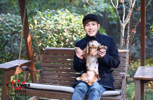 (陈学冬怀抱爱犬送新年祝福)